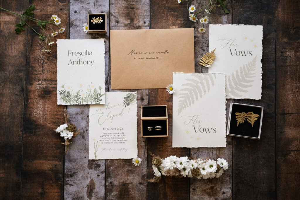 Confiez-moi la conception de vos éléments visuels : invitations, plans de table, menus, cadeaux personnalisés…